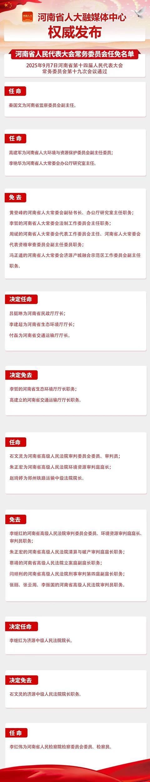 河南省十四届人大常委会第十九次会议任免名单公布