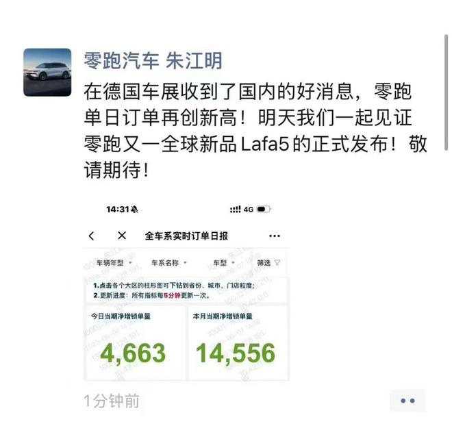 朱江明谈零跑汽车,单日订单突破4633辆,首周新增订单超14556辆佳绩揭晓