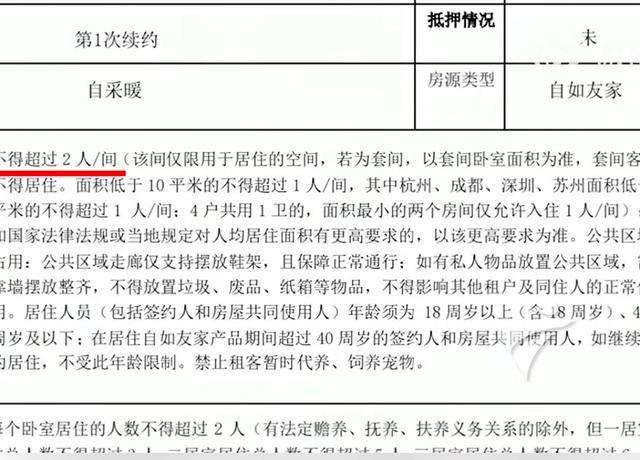 自如制订的租房合同当中提出的对租住人口、人均面积的限制,源于地方层面治理群租的规定。2022年《广州市住房租赁标准有关问题的通知》规定,出租用于居住的房屋,承租人人均使用面积不得低于5平方米(不含厨房、卫生间、阳台和地下储藏室),但是,前述通知还是留下了“弹性空间”:“承租人与同住人之间具有赡养、抚养、扶养义务关系及医疗护理等特殊情况的”,不受人均5平方米的限制。