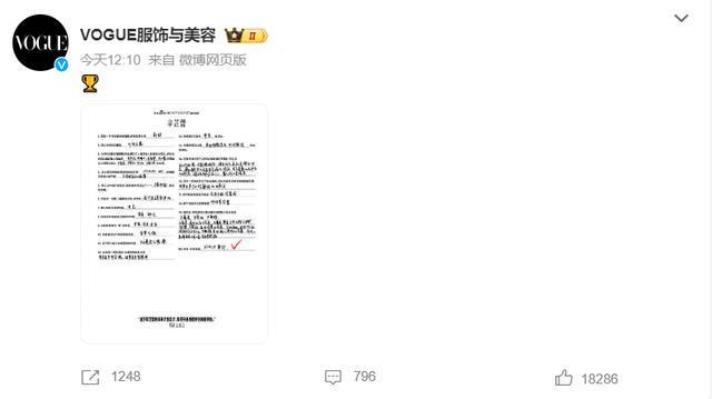 9月9日。@VOGUE服饰与美容 在@辛芷蕾 想挑战《VOGUE》单封的愿望上打勾,相关话题冲上热搜。