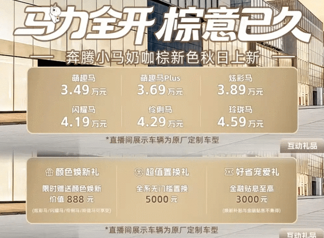 新款奔腾小马上市,叠加补贴最低仅需0.99万,新配色亮相!