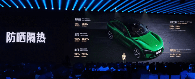 在全车防晒和隔热方面,小米YU7更是下足了功夫:全系前风挡采用夹层玻璃加三层镀银工艺,紫外线隔绝率达到99.5%;标准版和Pro版的天幕同样为夹层玻璃,并采用双层镀银工艺,紫外线隔绝率达到99.9%;Max配备最新一代EC调光天幕,实现99.85%的最大遮光率,以及99.9%的紫外线隔绝率和99.1%的红外线隔绝率。