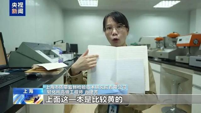 专家介绍,家长购买作业本时,可以通过作业本内芯纸张颜色进行识别。