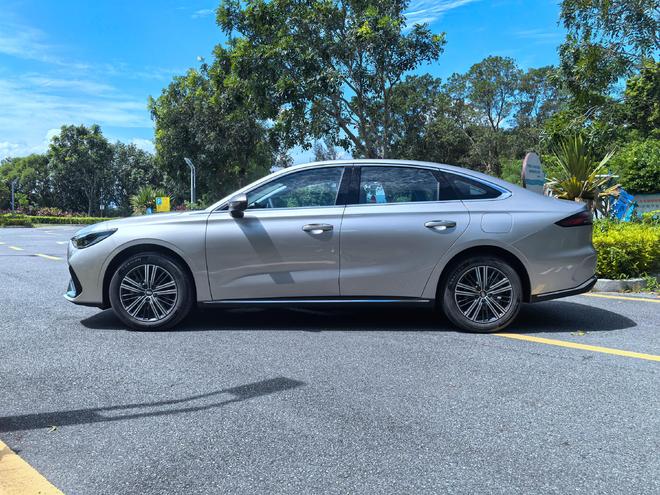 尺寸方面,车长4806mm、宽1886mm、轴距2756mm的同级领先尺寸,拉出流畅且大气的轮廓线。腰线从前灯眉一气贯穿至尾灯,辅以门板处丰富的折面线条,既增强立体感,也强化了整车的视觉厚重度。五辐式轮毂提升动感气质,也成为视觉亮点之一。