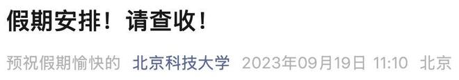 北京科技大学放假安排。图/北京科技大学微信公众号