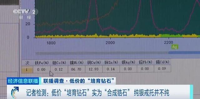 在浙江杭州黄金珠宝饰品质量检验中心,工作人员将记者在直播间内购买的两枚单价在150元的号称是培育钻石的戒指进行了检测。