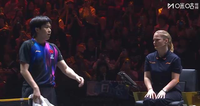 第一局比赛后,王楚钦向裁判投诉观众席有多次闪光灯干扰比赛,无奈走回休息区。