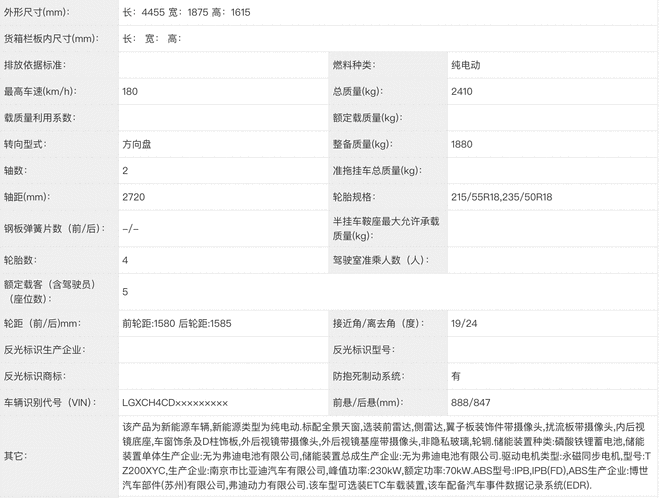 申报信息显示,新款元PLUS将搭载型号为TZ200XYC的永磁同步电机,最大功率230千瓦,相比在售车型提升了80千瓦,动力水平显著增强。最高车速由现款的160公里/小时提升至180公里/小时,性能表现更为出色。