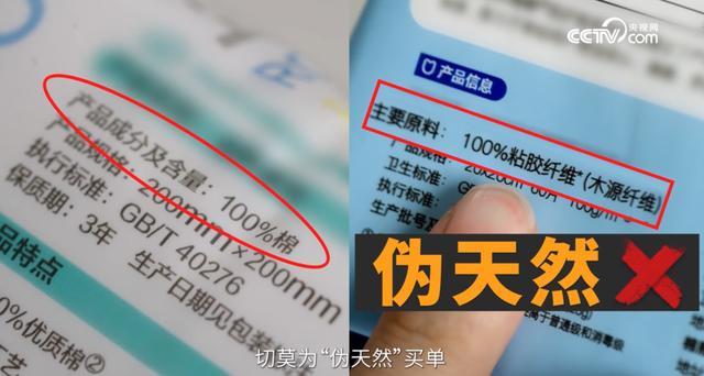 提醒各位消费者:建议大家选择正规大厂生产的,并且购买时看清商品包装上的纤维成分标注,只有明确标注100%棉的才是天然材质的洗脸巾,切莫为“伪天然”买单。