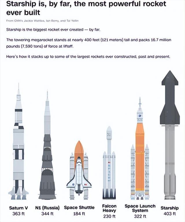 △CNN报道,“星舰”高度达到121米,升空时推力达到7590吨,是迄今人类建造的最强大火箭