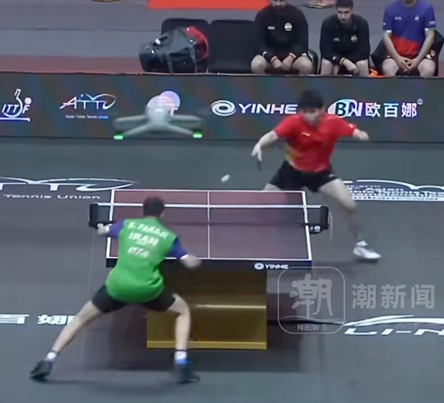 男团四分之一决赛,中国队对阵伊朗队。首盘,世界排名第二的林诗栋作为国乒一单出战,却被伊朗队15岁小将本雅明·法拉吉爆冷击败。首局,林诗栋11比8先下一城。第二局,林诗栋被对手以12比10逆转。第三局,法拉吉乘胜追击11比8再下一城。第四局,林诗栋凭借经验优势11比5扳平大比分。决胜局,两人缠斗至9比9,最终法拉吉11比9拿下比赛,为伊朗男队拿下一分。