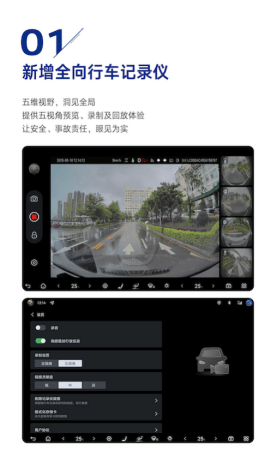其中最重要的升级是在行车安全保障方面,腾势N9新增的全向行车记录仪,能够提供前视、前环视、左环视、右环视、后环视五视角的预览、录制及回放,支持视频叠加行车信息,能够记录仪关键的数据和场景。比如当用户在行驶中遭遇侧方纠纷或者在拥挤的停车场遇到潜在剐蹭时,腾势N9能够提供360°无死角的影像记录。