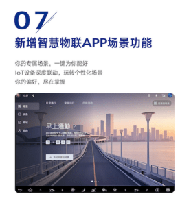 智慧物联APP场景加入,通过IoT设备深度联动,用户可根据不同场景需求,自定义个性化场景,匹配最适合自己的功能,比如儿童座椅会主动迎合车门开启的方向;在“宝宝入睡”模式自动调低音量至5、关闭氛围灯和天窗遮阳帘等。