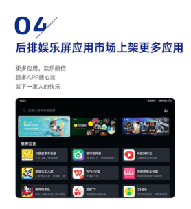 座舱娱乐的交互体验得到全新的升级,新增哔哩哔哩车机版、芒果TV、优酷车机版、腾讯视频、网易云音乐车机版、宝宝巴士等多种APP,满足用户全面的娱乐化需求。
