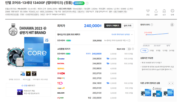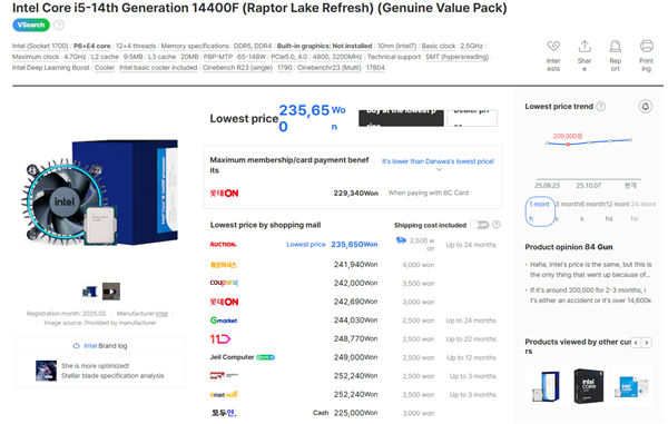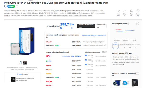 如今继日本之后,韩国也出现了类似的价格波动。据比价网站Danawa的数据显示,Intel的LGA 1700系列处理器价格在韩国市场出现了大幅上涨。