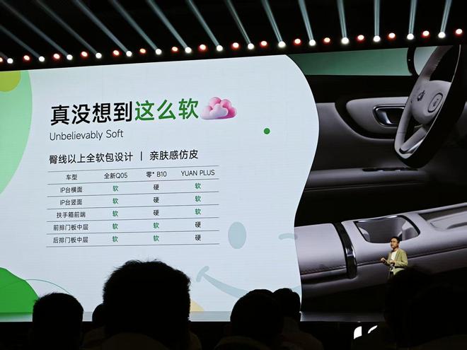 进入车内,全新Q05采用舒适环抱的内饰布局,软质材料包覆面积达80%,配合256色悬浮氛围灯与层叠式中控台造型,营造出清爽且具有层次感的驾乘氛围。