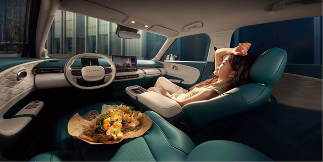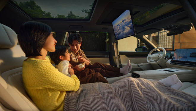 2026款eπ008五座版搭载同级唯一的二排电动魔毯座椅,可形成0.8平米的超大休息空间;主副驾座椅放倒后可连接形成超2米L型双边“贵妃榻”,让全家人都能找到最舒服的姿势。
