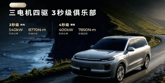 作为目前零跑旗下最高端的产品,D19将搭载投影大灯和双色拼色车身,拥有纯电和增程两个平台车型,增程版本搭载80.3kWh大电池,纯电续航超500公里,并且电池也采用了CTC技术,车内空间更优秀。纯电版本搭载全栈1000V架构,电池容量达到115kWh。全系首发1280Tops的双8797芯片。动力上,搭载三电机四驱系统,纯电三秒级加速,增程四秒级加速,底盘方面,D19将搭载双腔闭式空悬、CDC减振技术。