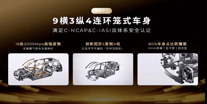 零跑对安全也是一点不含糊,9横3纵4连环笼式车身,更安全。