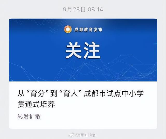 封面新闻记者翻阅网传消息发现,这与近期成都市教育局公布的一项改革有关——自2025年起,探索开展小-初-高12年贯通式培养改革试点。
