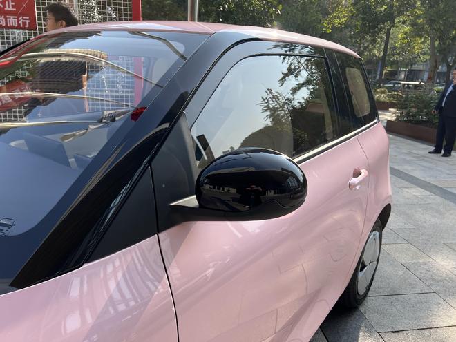 侧面来看,车身型面线条简约流畅,柔和圆润,四叶草轮毂盖简约大气,传统门把手让开门更简单,车门有着较大的开口面积,进出更方便。