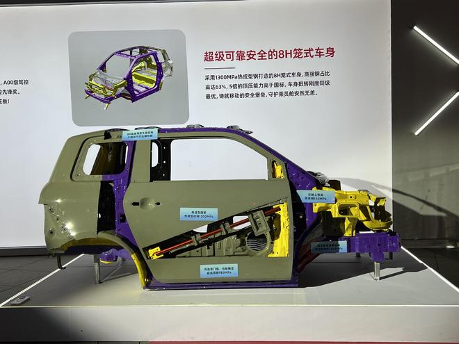 在安全方面,埃尚A100C车身采用高刚性笼式结构设计,高强度钢占比63%,关键部位采用1300MPa热成型钢,大幅提升整体抗撞性能,关键部位运用先进高强度材料,可有效吸收和分散碰撞能量,为驾乘人员提供安心守护。