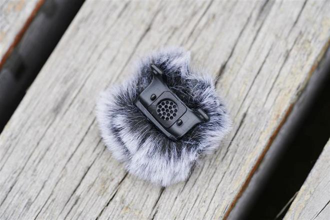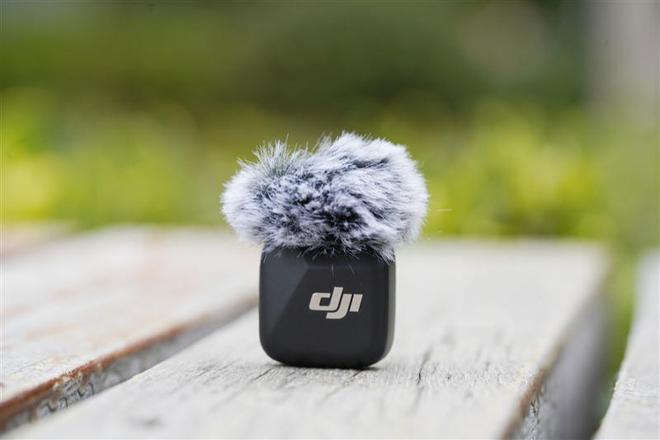 安装灰色防风毛衣之后的大疆Mic Mini本体。