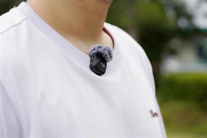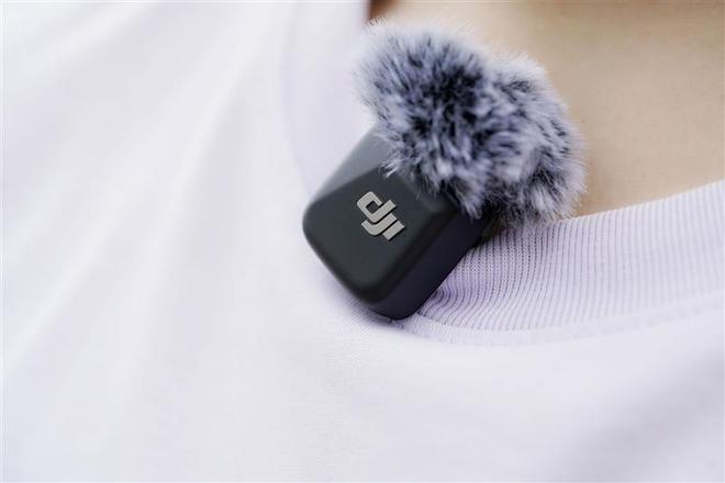在浅色衣物上佩戴,使用灰色防风毛衣更协调,如果是深色的衣物,大疆Mic Mini也附带有一个黑色的防风毛衣可以随时更换使用。