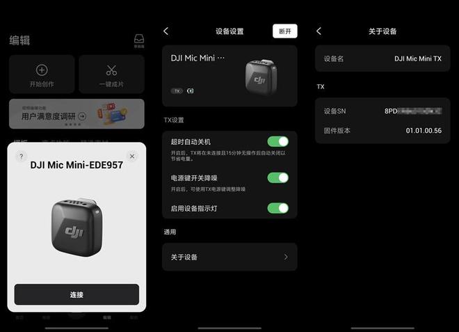 连接蓝牙之后,在大疆的DJI Mimo APP中就可以对大疆Mic Mini进行设置或固件升级,十分方便。