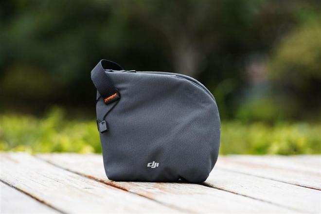 大疆Mic Mini纸盒内附赠了一个做工非常好的便携带,内部可以提供了四个独立网兜可以分别放置两个防风毛衣,充电线和充电底座。