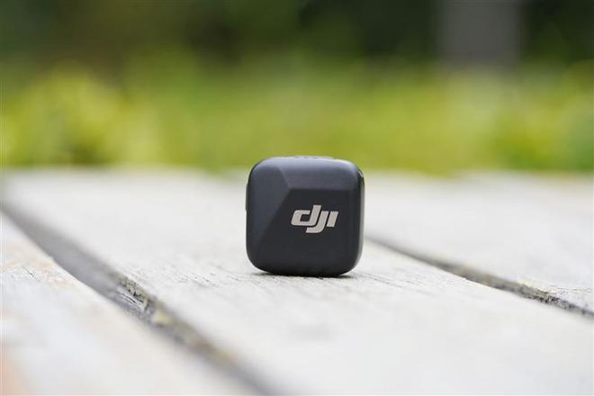 我们收到的这个大疆Mic Mini是全黑版本,正面有三条棱线和银色的DJI Logo。