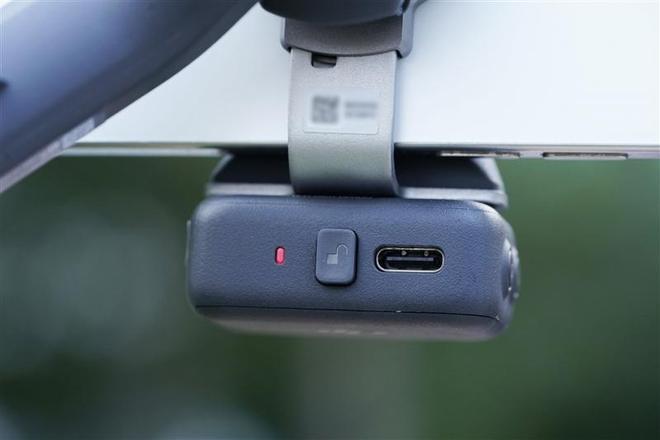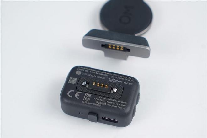 多功能追踪模块背面也有追踪指示灯和一个USB-C接口,中间的锁定键按下去就可以解锁摘下。
