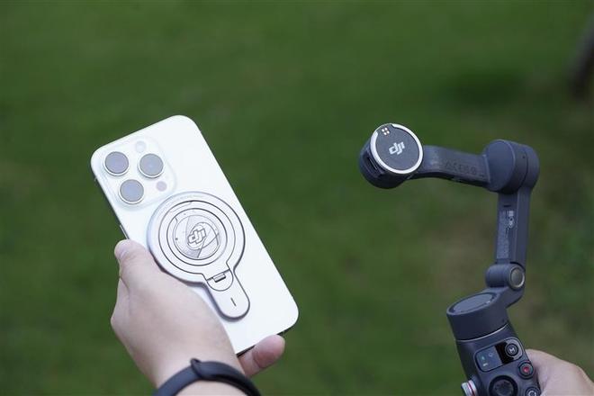 iPhone用户也可以选择大疆的磁吸背贴配件,更方便,但磁吸背贴无法安装使用多功能追踪模块。