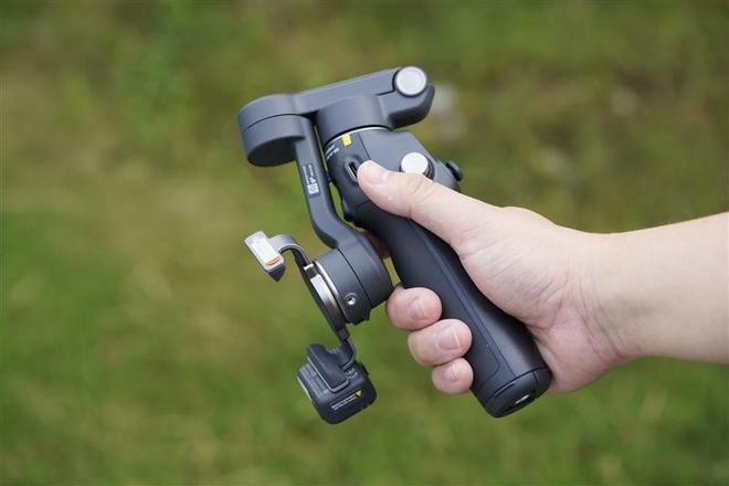 大疆Omso Mobile 8的整体造型延续了历代产品的造型,经过多年打磨的人体工程学手柄已经至臻完美,灰色的塑胶材质在重量防滑和质感之间找到平衡,随机附带的通用手机夹具,主流尺寸的手机都可以很好的固定。