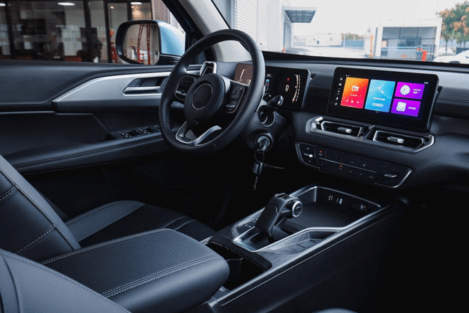 虽然是售价10万元级别的商用皮卡,但是与长城炮同平台的金刚炮8AT版依然是按照乘用车标准打造的。车内座舱在“极简美学”的设计理念下,依然具有科技、时尚的风格。在功能上,自动挡全系标配10.25英寸高清大屏+倒车影像,流畅不卡顿;领航型搭载乘用车级车联网系统,可畅快体验智能语音、智能车控、智能导航、车载微信、抖音等服务功能。