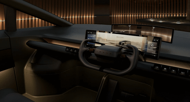 中控台设计则更偏向于未来感,半幅方向盘与可折叠的屏幕几乎构成了全部操作与显示系统。虽然造型有些过于前卫,但界面设计也许会用在后续雷克萨斯车型上。