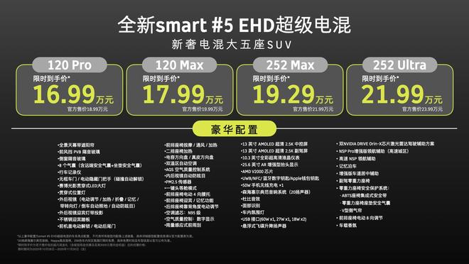 Smart精灵5 EHD超级电混上市,限时价16.99万起,续航达1615km