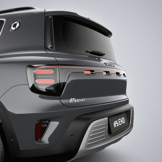 车尾采用当下流行的贯穿式尾灯,与前脸遥相呼应,使得整车外观表现和谐、自然。同时,smart精灵#5 EHD也针对后包围的样式进行重新设计,采用了枪灰色饰板进行装饰,排气系统则采用隐藏式排气布局。