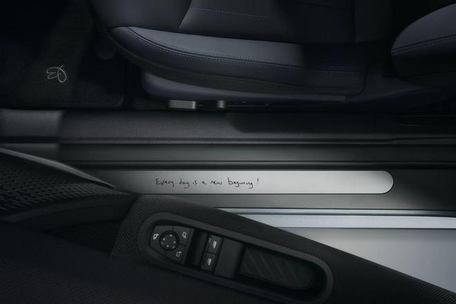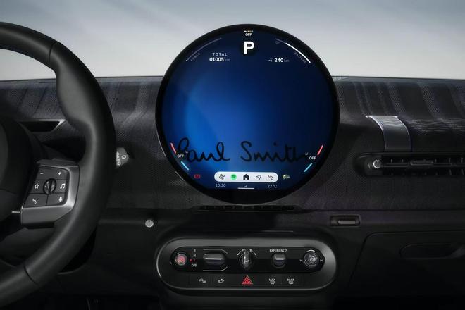MINI行业首创的OLED圆屏新增三种Paul Smith专属背景,在个性化模式下呈现数字化交互体验。车辆解锁时,地面投射设计师手写体“Hello”灯光迎宾提示,迎宾踏板印有“Every day is a new beginning”座右铭。驾驶位地垫隐藏手绘兔子图案,作为设计彩蛋。