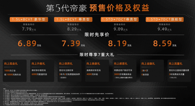 第5代帝豪预售启动,全新BMA Evo架构,限时优惠价6.89万起