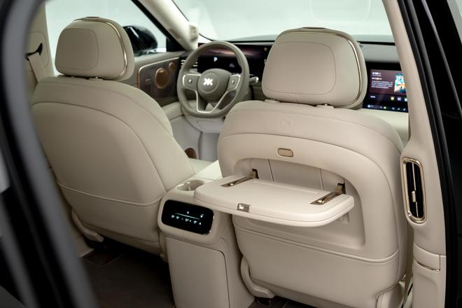 同时,二排还配备了21.5英寸4K娱乐屏,二排右侧拥有小桌板,分别满足办公娱乐等多样场景。