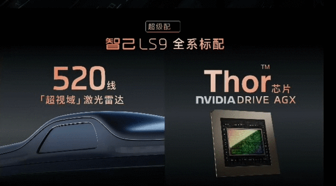 3、标配520线超视域激光雷达和英伟达ThorU芯片,感知能力强大