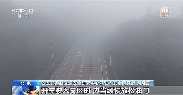 公安部道路交通安全研究中心驾驶人安全研究部 刘晓晨:要注意控制车速和车距,不要急刹车,开车驶入雾区时,应当缓慢放松油门,连续轻踩制动以降低车速,要跟前车保持平时2~3倍的安全距离。