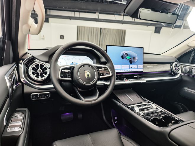 舒适性配置方面,配备了Nappa云感按摩座椅、5.4L四模式车载冰箱(支持-6℃~50℃调温)、三区智慧空调等。后备箱容积789L,可扩展至1803L,搭配6kW车外放电功能,满足户外需求。这些配置颠覆了越野车简陋的刻板印象,转而以“冰箱彩电大沙发”的满配姿态,适配家庭用户对舒适出行的需求。