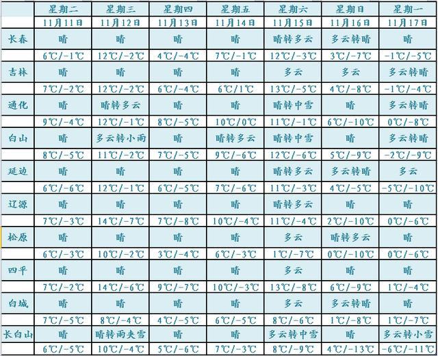 12日夜间到13日白天,全省多云转晴,白山、长白山保护开发区有小雪或雨夹雪。