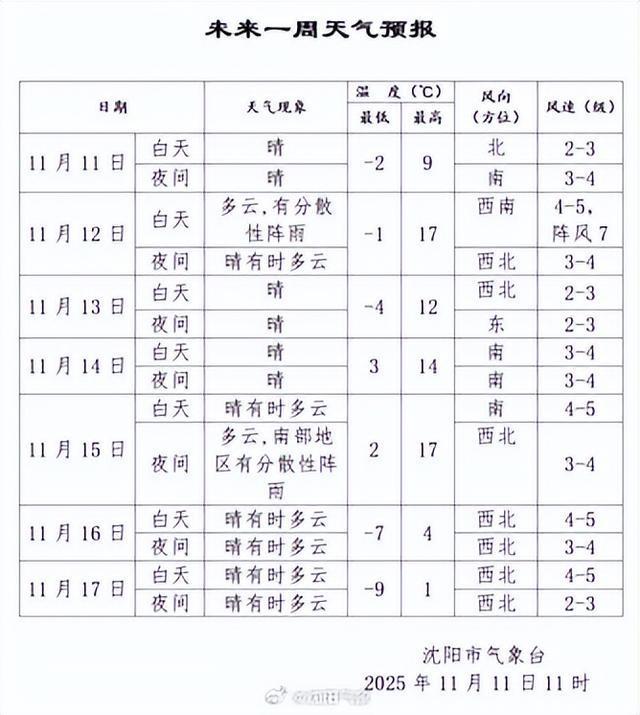 据沈阳市气象台消息