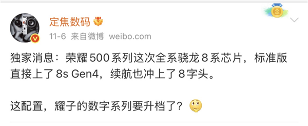 经历多轮曝光之后,荣耀500系列终于正式官宣!11月13日,荣耀官方揭晓荣耀500系列真容,一石激起千层浪。