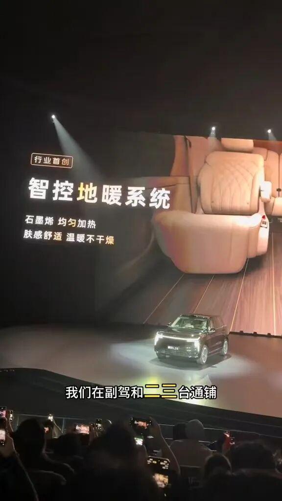 发布会上介绍称,该车搭载了行业首创智控地暖系统,宣传采用石墨烯均匀加热,肤感舒适,温暖不干燥,非常适合即将到来的冬季使用。