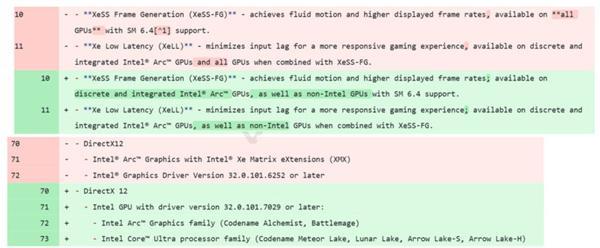 另外Intel在更新的开发者指南中,已移除对XMX硬件的强制要求,并表示XeSS帧生成现在应能与所有支持Shader Model 6.4的GPU兼容,包括Intel和非Intel显卡。