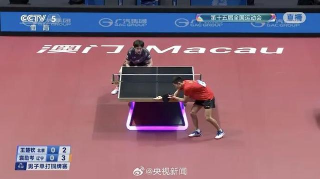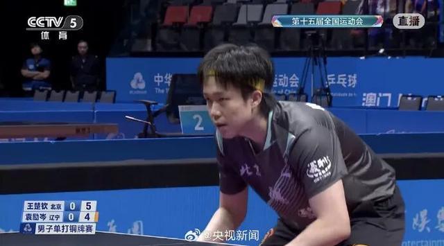 在刚刚结束的男单铜牌赛上,北京队选手王楚钦以4∶1((11-9,11-8,4-11,11-5,11-7)战胜辽宁队选手 袁励岑 ,获得铜牌。